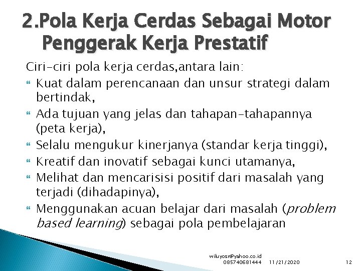 Sikap tanggap terhadap perubahan usahanya. Yang bukan aspek kerja prestatif adalah…. Kerja ikhlas dalam hal ini dapat diartikan kerja yang dilakukan tanpa keluh kesah. Kerja lebih efisien dan efektif e. Latihan ini dapat dilaksanakan dengan cara: Beberapa perencanaan perilaku bekerja prestatif, efektif dan efisiensi adalah sebagai berikut: Kerja ikhlas dan jujur d. 2.4 pengertian karakter prestatif karakter prestatif adalah perilaku seseorang yang selalu bervisi dan memiliki misi ingin maju. Tapi yakinilah bahwa setiap manusia adalah pemenang dan pemenang tersebut akan bertemu dengan pemenang yang. 3) sasaran jelas, realistis dan menggairahkan. Sikap tanggap terhadap perubahan usahanya. Oraang yang selalu ingin maju harus mau belajar banyak serta mempunyai keyakinan yang kuat dalam usahanya. Menjadi orang yang unggul berbeda dari orang kebanyakan 2.